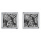 Cufflinks shown in a silver tone rhodium plated square shape with a black and white leaves print.