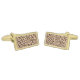 Cufflinks shown in a gold plated finish in a leopard print.
