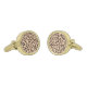 Cufflinks shown in a gold plated finish in a round shape with a leopard print.