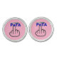 Cufflinks Peta Flip a syringe needle on top of the word peta peta kills thousands of animals a year