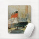 Vintage Ocean Liner illustration of Cunard's premeir 4-stack ocean liner Aquitainia sailing up the Hudson River to dock in the Early 20th Century.