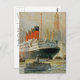 Vintage Ocean Liner illustration of Cunard's premeir 4-stack ocean liner Aquitainia sailing up the Hudson River to dock in the Early 20th Century.