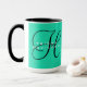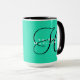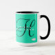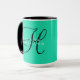 Spearmint green coffee mug with your name in white and initial in black. Colors can be changed by choosing the personalize and customize options. Design HAMbyWhiteGlove aka HAMbWG.
