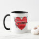 Professional advertising and marketing coffee mug- Barber - HAMbyWhiteGlove - This design has a heart with a scissor graphic. The background and text on this one can be any color. Just choose to customize within the personalize option. Shown with a teal, purple, gray, black, gold, and green geometric background, bright red heart, scissor graphic and occupation text.
