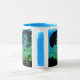 Promotional coffee mug makes a great statement for yourself, your employees, at your salon, for your clients and friends, to help promote your business. Pretty enough to just own, with a rainbow effect graphic and all your business information, like web address, email address, phone number, street address, salon name, your name and title, plus room for a personal statement. Designed by HAMbyWhiteGlove aka HAMbWG. blue and green effect, black graphic - with black text, shown on white cup with blue inside, blue handle.