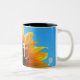 Coffee Mug with photo, Initial and Name. The background in this image is a yellow sunflower with a blue sky - the matching accessories that are sold separately display more of the photo, however this mug matches nicely as it provides a gentle color backdrop for your name. Fonts and font colors can be changed. Matching decorative office accessories are sold separately. Design HAMbyWhiteGlove aka HAMbWG.