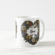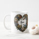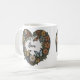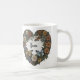 Personalized heart shaped coffee mug with room for two names, designed by HAMbyWhiteGlove aka HAMbyWG or HAMbWG