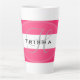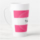 Pink and white stripe Latte or Coffee Mug with your name in black and initial in gray. Design HAMbyWhiteGlove aka HAMbWG
