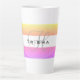Yellow, Pink and white striped coffee mug with your name in black and initial in gray. Design HAMbyWhiteGlove aka HAMbWG