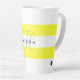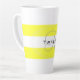 Yellow and white striped coffee mug with your name in black and initial in gray. Design HAMbyWhiteGlove aka HAMbWG