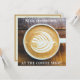 Cup of Coffee Latte with Leaf-Shape Foam on Wood Card