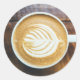 Cup of Coffee Latte with Leaf-Shape Foam on Wood Classic Round Sticker