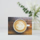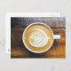 Cup of Coffee Latte with Leaf-Shape Foam on Wood Postcard