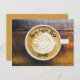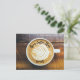 Cup of Coffee Latte with Leaf-Shape Foam on Wood Postcard