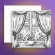 A square flat card. One side is a coloring page with a cup of coffee on the window sill. The back is blank so you can keep and color for yourself or you can send it to a friend and write a note on the back.
