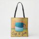 This vibrant coffee design showcases a two-tone teal mug against a striking gold and orange background, accented by a bold black and red diamond border. . Qzik Art