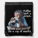 This backpack features a hilariously relatable design that will make you smile every time you grab it. The wild-haired, bleary-eyed character at the center of the design clutches his coffee pot like it’s the only thing keeping him from the edge. The words around him speak the universal truth: "Coffee isn't a drink... it's a cup of sanity." Because let’s face it, we all know that feeling.
