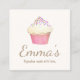 Cute illustration of white icing cupcake with rainbow sprinkles and pink wrapper. This is a unique design that fuses whimsical with a subtle elegant feel.