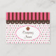 Pink and brown candy colored stripes, chocolate dots, and scallops give this cupcake business card retro style. Use this business card for a bakery, boutique, shop, catering, etc...Customize the information to suit your needs, add or delete text, etc. The designs are from original art.