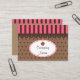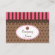 Pink and brown candy colored stripes, chocolate dots, and scallops give this cupcake business card retro style. Use this business card for a bakery, boutique, shop, etc...Customize the information to suit your needs, add or delete text, etc. The designs are from original art.