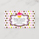 © 2010 Socialite Designs. Colorful cupcake, text cloud and polka-dot background bakery business cards ready for you to personalize for your bakery business. Font style can be changed. Need HELP with customizing? Please do not hesitate to contact me.