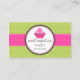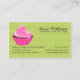 © 2013 Socialite Designs. Promote your bakery business with these colorful cupcake business cards. Our design has an a cupcake inside pink polka-dot cup. Your business text goes inside a whimsical scalloped circle and finished off with a pink polka-dot ribbon.