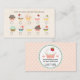 A sweet way to reward your most loyal customers! Mark each customer's visit to your bakery, and after ten purchases, reward them with a free cupcake or pastry. Yummy and pretty bakery loyalty cards with different strawberry, chocolate and vanilla cupcakes with sprinkles, flower shaped icing, and strawberries on a parchment look background. The pastel colors add to the sweetness of the this rewards card. Customize the front and back of the card with your own wording. Perfect for the pastry chef, bakery owner or anyone starting to sell their own baked goods. Artwork © Chrissy H. Studios, LLC. All rights reserved.