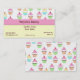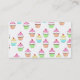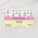 This pretty business card is perfect for any baker or bakery. It features a white top and yellow bottom. Tiny little cupcakes fill the white top and your text goes on the yellow bottom. A pink stripe runs through the center. The back is covered in tiny colorful cupcakes!