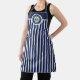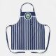 © 2021 Socialite Designs Inc. Elegant and classic navy blue and white striped apron with a cupcake design. Around the cupcake design are curved text elements that can be customized. Please contact Socialite Designs if you need assistance with the text.