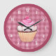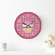 Cupcake Cute Pink Gingham Bakery Dessert Large Clock