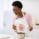 Great for a baker, pastry chef or fabulous Mom, this whimsical apron tells the world of their prowess in the kitchen. All text is fully Customizable to add a name, business name or event name.