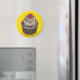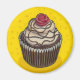 What a fun fridge magnet, a chocolate mocha cupcake with a red rose on top! The polka dottie yellow background is sure to brighten up your kitchen!