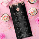 Present your yummy baked goods to your customers with these elegant, sophisticated, simple, and modern custom menu price list cards. A sparkly, dark rose gold cupcake, glitter drips, and light pink handwritten script typography overlay a black damask pattern ombre background. Personalize with your business name, complete pricing info and contact info with the customizable templates. Makes a chic, professional, and stylish statement for your business. Coordinating business cards are also available: