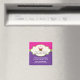 This bright and whimsical cupcake magnet is sure to get attention. The cream colored frame contains the chocolate cherry-topped cupcake with pink and white frosting along with a business name and description. It all sits against a colorful pink chevron and purple polka dot background. The business contact information goes below. Perfect whimsical promotional piece for a cupcake shop, bakery or anyone dealing in sweet treats. Available in alternate colors with matching products.