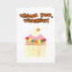 This 'Thank You, Teacher!' card has a cupcake design, made out of handpainted paper collage. The cupcake is decorated with pink frosting and candy and topped with cream. Blank inside for your own message.