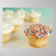 Cupcakes, focus on one in front with poster