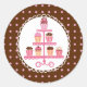 Cute and modern sticker. Perfect for party favors or to seal envelopes. Features cupcakes on a stand with polka dots pattern background. Pink, white and brown color palette. Other matching products available in this store.