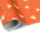 Wrapping paper with funny cupcakes pattern on orange background