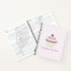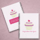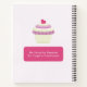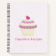 A pink recipe notebook with a pastel cupcake and personalized text on the front and back. You could write down all your favorite dessert recipes, so you always have them at your fingertips. You can also give it to someone who likes to bake cakes!