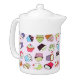 Medium white Porcelain teapot with an image of whimsical cupcakes on pink. See matching candy jar, espresso cup, pitcher, paper plate and coasters. See the entire Kids' Corner Teapot collection in the FOOD/BEV | Dishes section.