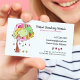 This adorable, whimsical bakery business card features original artwork of the cutest little cupcakes growing on a polka-dot and striped tree. Two little birds enjoy their sweet home full of baked goods! With plenty of room to customize for your own baking services, this card can be easily personalized to fit your home business, bakery, or side hustle! You're sure to stand out with this bright and fun card to advertise what you have to offer!