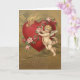 This Valentine's Day card shows a vintage-style cupid with soft golden curls and wide, gentle eyes, floating in front of a large deep red heart. His small wings are spread as if he’s hovering, and a gold arrow runs through the heart. Near the arrow, bright gold spark-like flames rise up and catch the light, giving the center a warm glow. The cupid holds a bunch of roses in light pink and dark red, with the stems and blooms resting across the heart. Behind everything is a rich gold background with faint old-fashioned patterns that make the scene feel classic and romantic. At the bottom, the words “To My Valentine” appear in shiny gold cursive lettering, set neatly under the picture. It’s a sweet, affectionate design that feels perfect for love or close friendship 💕❤️. Hope it helps you share your Valentine’s Day love in a simple, heartfelt way.