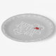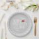 This elegant Valentine's Day paper plate features a striking white typography design of Happy Valentine's Day accented by a tiny cupid and red hearts on a soft gray striped background. A lacy white border completes this unique design. The background is optional and can be deleted to select an alternate color if preferred. Search ID736 to see other products with this design.