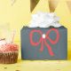 Cute colorful cups bows gold snow flakes and mistletoe over gray background. Customizable wrapping paper template