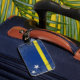 Navigate airports with Caribbean island flair! This distinctive luggage tag features Curacao's vibrant blue flag with two yellow stars representing this Dutch Caribbean gem. Perfect for identifying bags while traveling to or from this colorful island paradise. Whether you're exploring Willemstad's pastel architecture, diving pristine reefs, or connecting through international airports, this durable tag ensures your luggage stands out while showcasing Curacao's unique position as a Caribbean cultural crossroads and tropical destination.