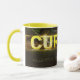 I was thrilled this came out so well. It is a very attractive mug with the colored handle and interior. Being able to personalize it was easy! It was designed for an end of the year thank you gift to the special recipient. perfect. Text lines up perfectly parallel to the top edge of the mug.