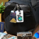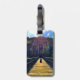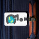 This luggage tag has the Curb Free accessible travel logo on the front and a beautiful photo showing a wheelchair user crossing a bridge on the back.