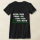 My overall review is that the T-shirt is nice, it fits true to size however the font is significantly smaller than advertised and you can't read it. The printing is unreadable and there is a strain to read it. It does not look like the advertised product. Maybe the shirt color is darker or a larger more visible font should have been used. Photos with and without flash and font is barely legible.