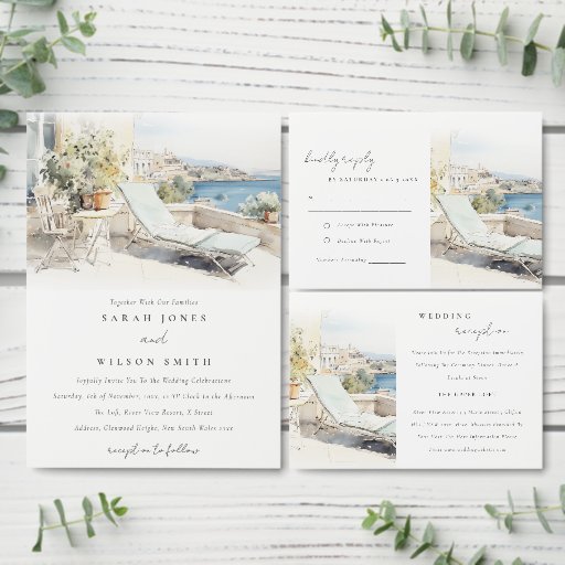 Curfu Greece Watercolor Landscape Destination Wedding Suite. If you need any further customization please feel free to email me on yellowfebstudio@gmail.com. or message via Zazzle.