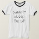 Curiosity killed the cat = la curiosité est un vilain défaut - Customizable t-shirt with English in front and French in back. You can easily change text (color, font, size and position) by clicking the customize button.